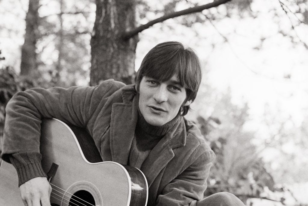 I was lazing with a lover the other day when Polly by Dillard & Clark rose out of a playlist like steam off a glistening vaginal mound. The duo, short-lived but highly influential, paired banjo virtuoso Doug Dillard with Gene Clark, a founding member of The Byrds and writer of “Eight Miles High.” Clark was - it is more than fair to say - a gorgeous man - more striking than Jim Morrison - with dark hair and high cheekbones betraying some Native American heritage. For a time, he was unofficially The Byrds’ frontman, until internal squabbling over royalties and health issues saw him depart at the height of the band’s fame.